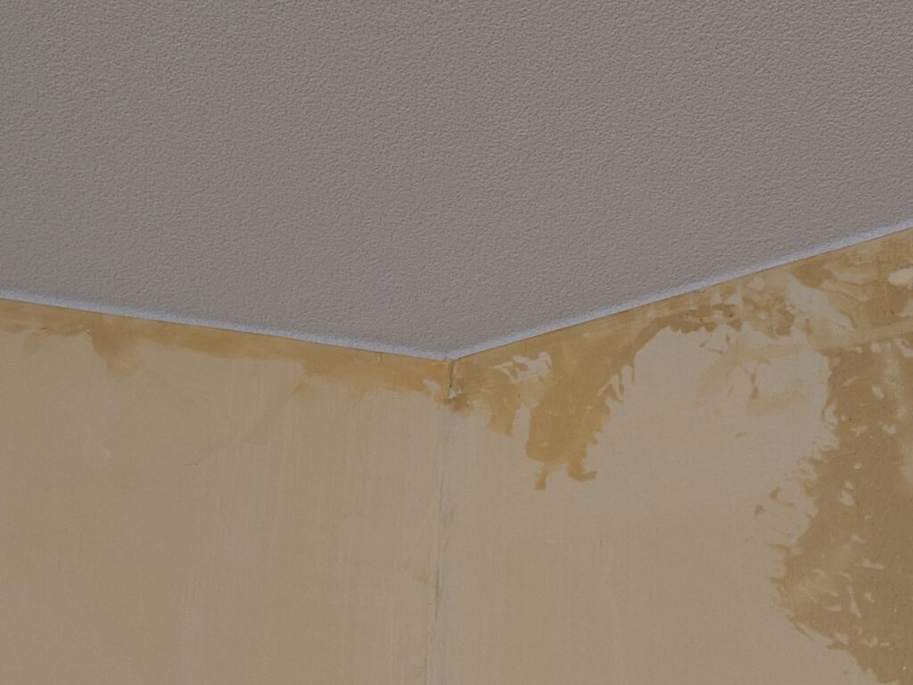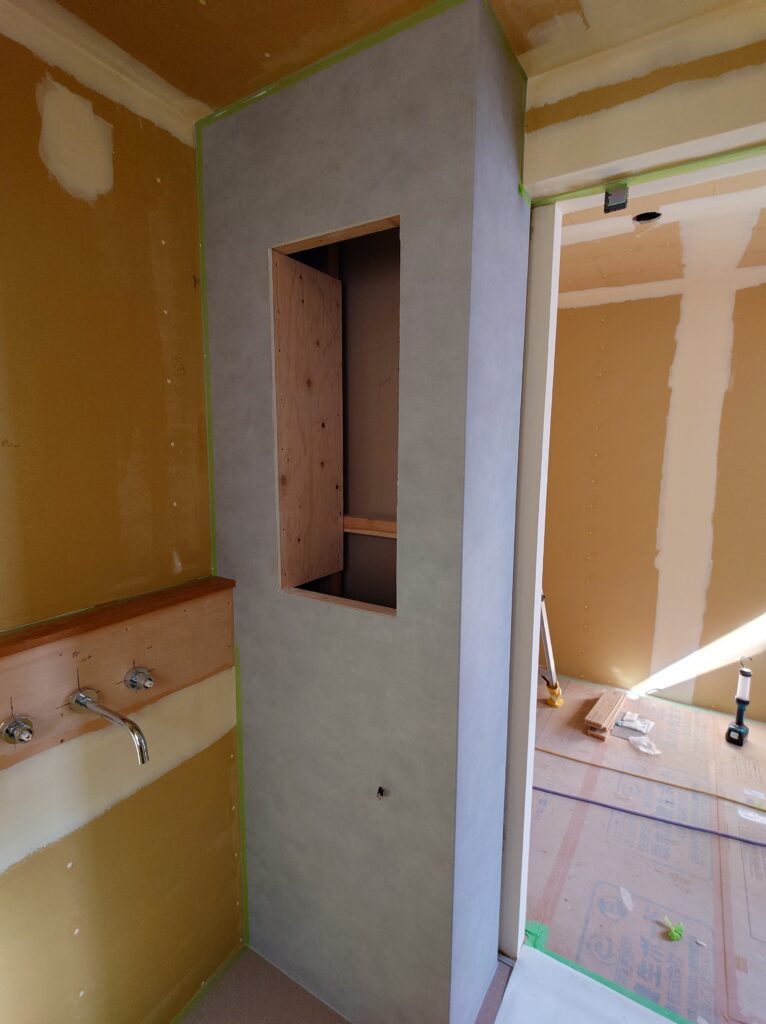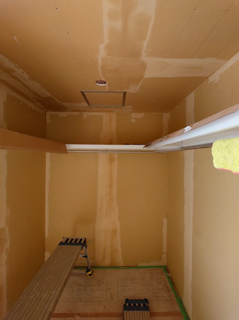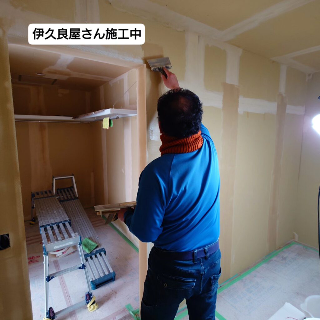 壁のパテ工事まで入り、本日はクロス工事が部分的に開始!